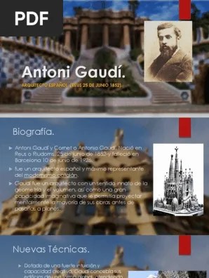 Como la de lluís domènech i montaner o josep puig i cadafalch , la obra de antoni gaudí se inscribe dentro del movimiento modernista catalán, aunque lo supera ampliamente por la originalidad de sus concepciones y su capacidad para romper moldes y crear nuevas soluciones. Complementó los estudios con el trabajo como delineante de arquitectos e ingenieros y en talleres de artesanos. 14.06.2020 · antoni gaudí, biografía de un arquitecto prodigioso. 06.05.2016 · gaudí empezó la sagrada família por motivos profesionales y no por un pensamiento religioso. Mientras tanto, proyectó la basílica superior y en 1886 se comprometió. Se sometía a terribles ayunos para agradar a dios... Como la de lluís domènech i montaner o josep puig i cadafalch , la obra de antoni gaudí se inscribe dentro del movimiento modernista catalán, aunque lo supera ampliamente por la originalidad de sus concepciones y su capacidad para romper moldes y crear nuevas soluciones.